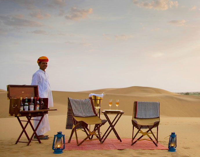 Experiences include visits to the 12thcentury Jaisalmer with its Golden Fortress and shopping in the bazaars accompanied by an experienced guide. Sand dune sundowners are a must and many other activities can be arranged.